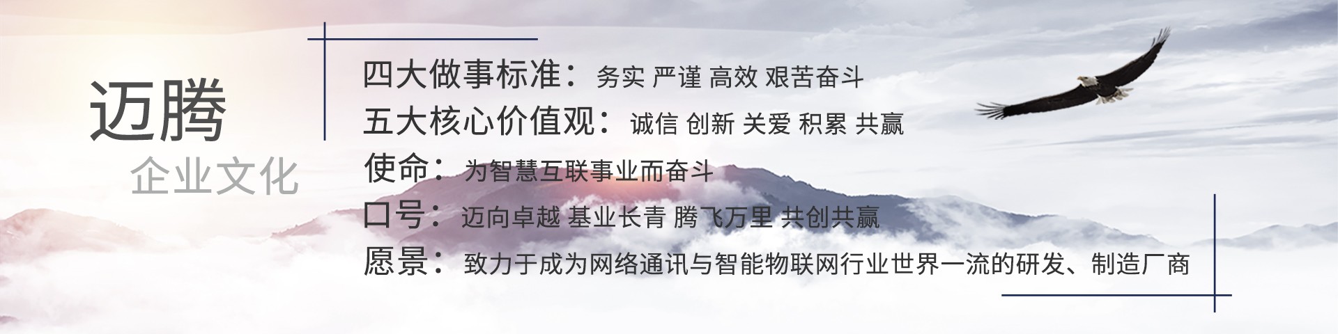 深圳市邁騰電子有限公司(簡稱邁騰),成立于2008年2月,是一家專注于網(wǎng)絡通訊與物聯(lián)網(wǎng)產(chǎn)品開發(fā)、生產(chǎn)、銷售及服務為一體的國家級高科技企業(yè)。目前是國、內外網(wǎng)絡通訊與物聯(lián)網(wǎng)行業(yè)前列的研發(fā)、制造廠商。